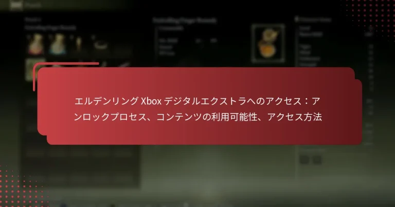 XboxストアでElden Ringのコードを引き換えるのは、デジタルエクストラでゲーム体験を向上させるための簡単なプロセスです。XboxコンソールまたはXboxアプリでコードを入力することで、ゲームや関連コンテンツを直接アカウントに追加できます。さらに、コードの価値はあなたのウォレット残高に反映され、将来のXboxストアでの購入に使用できます。 XboxストアでElden Ringのコードを引き換えるにはどうすればよいですか? XboxストアでElden Ringのコードを引き換えるには、Xboxコンソールの適切なセクションまたはXboxアプリでコードを入力する必要があります。このプロセスにより、ゲームやデジタルエクストラを直接アカウントに追加できます。 コード引き換えの手順ガイド 以下の手順に従って、XboxストアでElden Ringのコードを引き換えてください: Xboxコンソールをオンにし、アカウントにサインインします。 ホーム画面からXboxストアに移動します。 下にスクロールして、コードを入力するオプションを選択します。 Elden Ringのコードを慎重に入力し、タイプミスがないことを確認します。 引き換えを確認し、ダウンロードが開始されるのを待ちます。 引き換えプロセス中の一般的なエラー 引き換えプロセス中に、いくつかの一般的なエラーに遭遇することがあります。よくある問題の一つは、コードを誤って入力することで、無効なコードであることを示すメッセージが表示されることです。常にタイプミスや誤った文字がないか確認してください。 もう一つの一般的なエラーは、すでに使用されたコードを引き換えようとすることです。コードが引き換え済みであるというメッセージが表示された場合、そのコードは再度使用できません。新しい未使用のコードを使用していることを確認してください。 コードが無効な場合の対処法 コードが無効と表示された場合、まず正しく入力したか確認してください。含まれている可能性のあるスペースや誤った文字をチェックしてください。すべてが正しいように見える場合、そのコードがXboxストア用であり、他のプラットフォーム用ではないことを確認してください。 それでもコードが無効な場合は、購入した小売業者に連絡してください。彼らは支援を提供するか、コードが不良であった場合は交換を行うかもしれません。購入の領収書を手元に用意しておくと良いでしょう。 異なるXboxコンソールでのコード引き換え方法 引き換えプロセスは、使用しているXboxコンソールによって若干異なります。Xbox OneおよびXbox Series X|Sの場合、手順は上記とほぼ同じです。ただし、スムーズな体験のために、コンソールが最新のソフトウェアバージョンに更新されていることを確認してください。 Xbox 360の場合、Xbox Liveマーケットプレイスにアクセスする必要があります。「ゲーム」セクションに移動し、「コードを引き換え」を選択してElden Ringのコードを入力します。インターフェースは異なる場合がありますが、基本的な手順は一貫しています。 コード引き換えの代替方法 コンソールで直接コードを引き換える以外にも、モバイルデバイスやPCのXboxアプリを使用することもできます。アプリを開き、サインインして、コードを入力するオプションがあるストアセクションに移動します。 もう一つのオプションは、公式のXboxウェブサイトを通じてコードを引き換えることです。アカウントにログインし、「コードを引き換え」セクションに移動して、そこでElden Ringのコードを入力します。この方法は、コンピュータを使用することを好む場合に便利です。 コード引き換えが私のXboxウォレット残高に与える影響は? ....